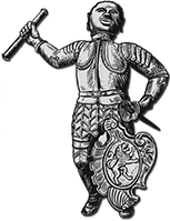 In der ältesten Stadtchronik wird erwähnt, dass am 1. Juni 1622 von dem Schieferdecker Conrad Schreyer der geharnischte Mann (heute im Volksmund "Bratwurstmännle" genannt, gilt als Maß für die Coburger Bratwürste), auf den Rathausturm gesetzt wurde. 1575 schuf Hans Schlachter den "Coburger Erker" am Rathaus. Dort fanden sich die beiden Wappenfiguren: einmal außen in der Hand des steinernen Mauritius und im Schlussstein des inneren Gewölbes.